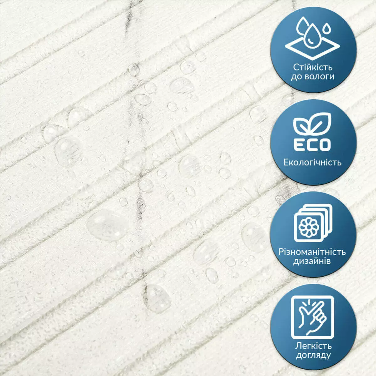 - Легкість монтажу: наявність клейового шару дозволяє встановити панелі без необхідності застосування додаткових матеріалів.