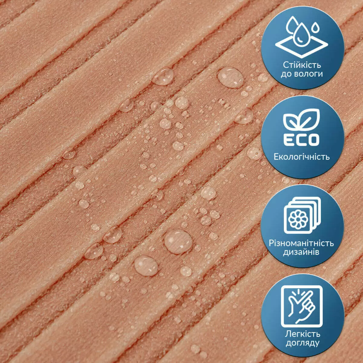 - Декоративний шар: кольоровий друк високої якості, що довго зберігає свою насиченість.