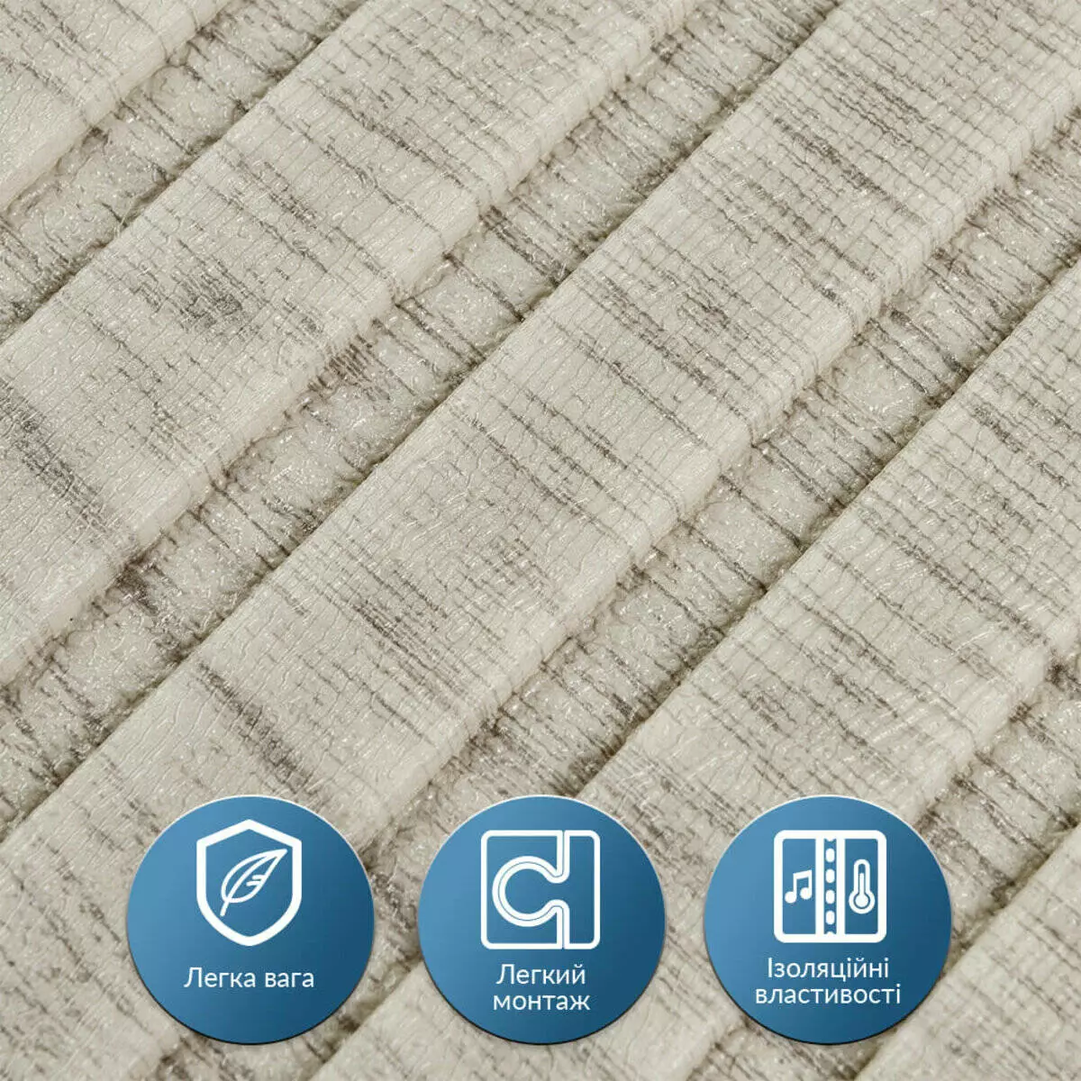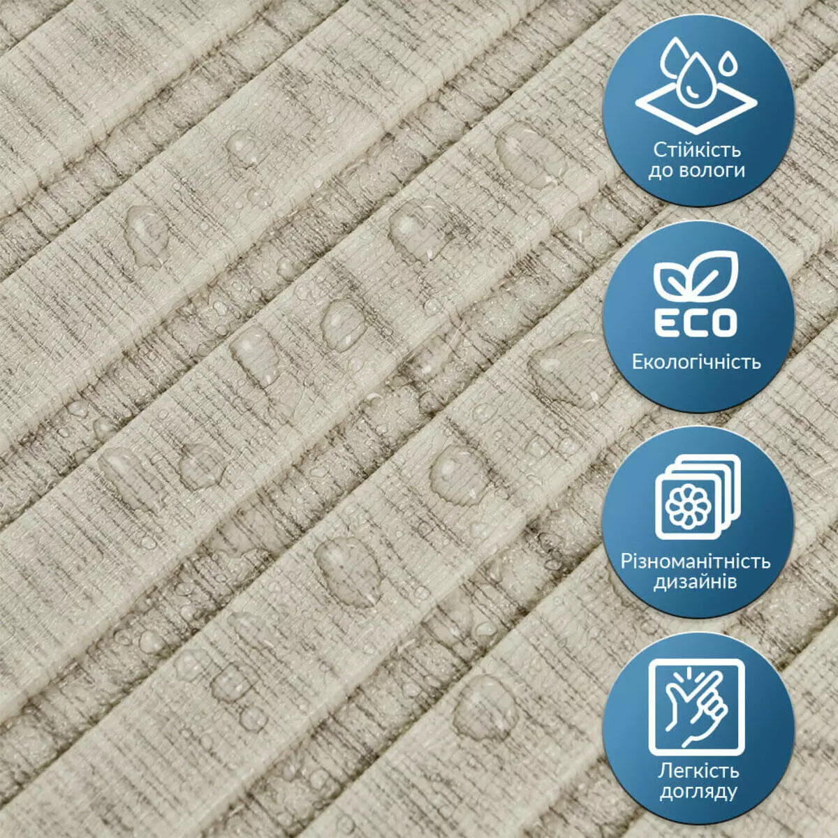 - Легкість монтажу: наявність клейового шару дозволяє встановити панелі без необхідності застосування додаткових матеріалів.