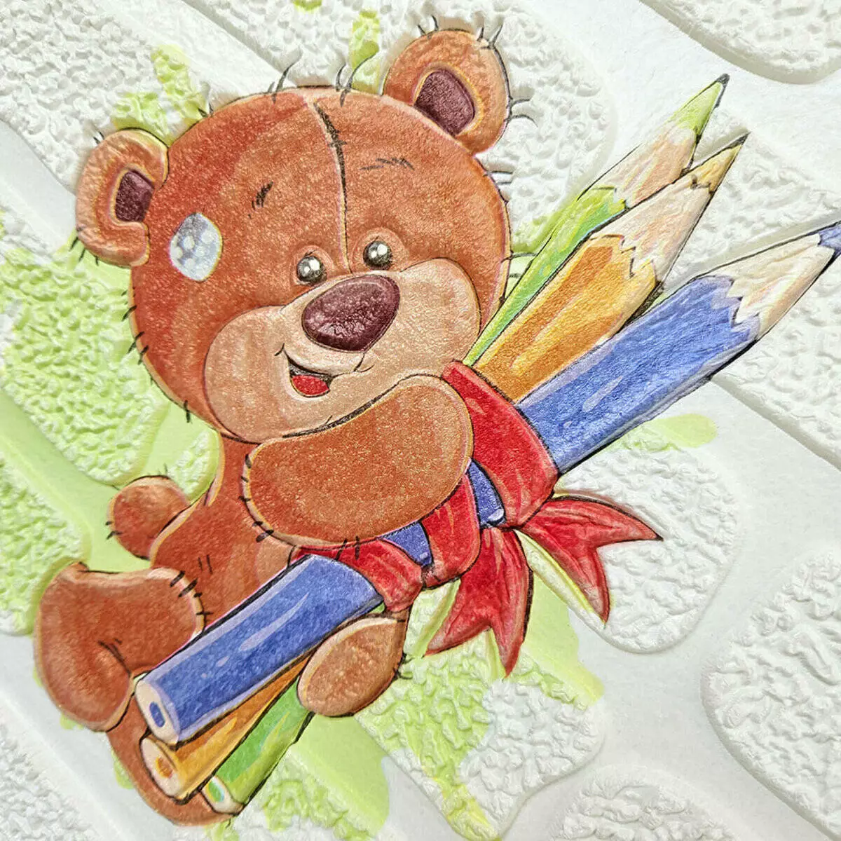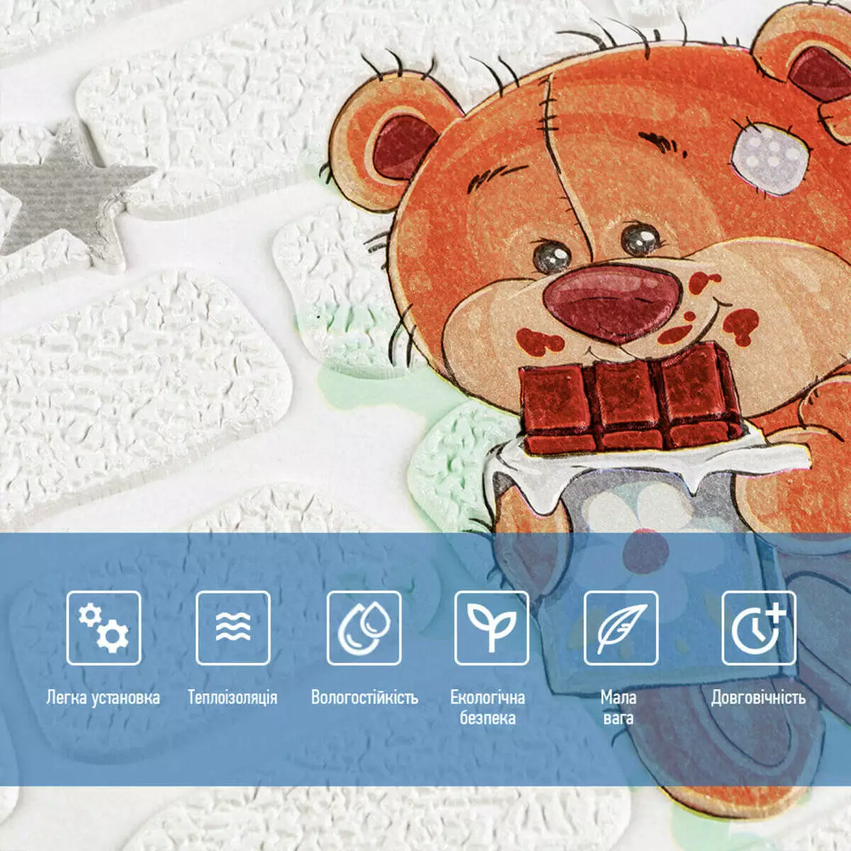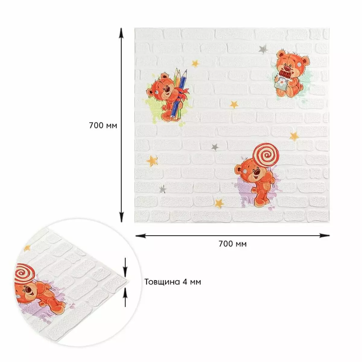 Панель стінова 3D 700х700х4мм Ведмедики на білому фоні SW-00001975
