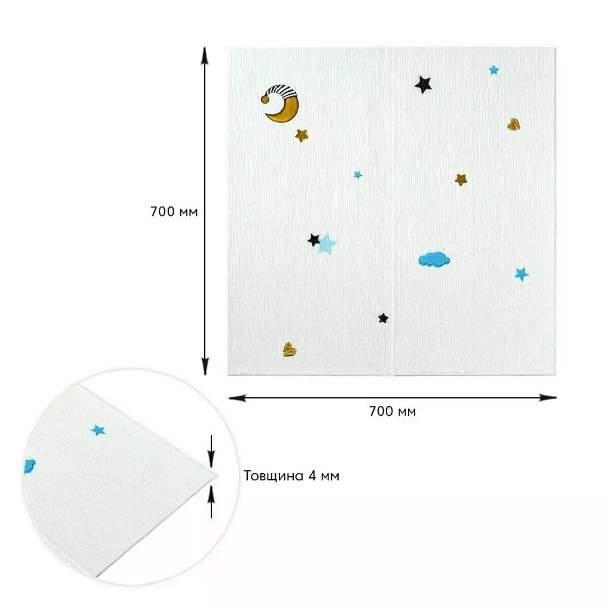 Панель стінова 3D 700х700х4мм Зірки та місяць на білому фоні SW-00001970