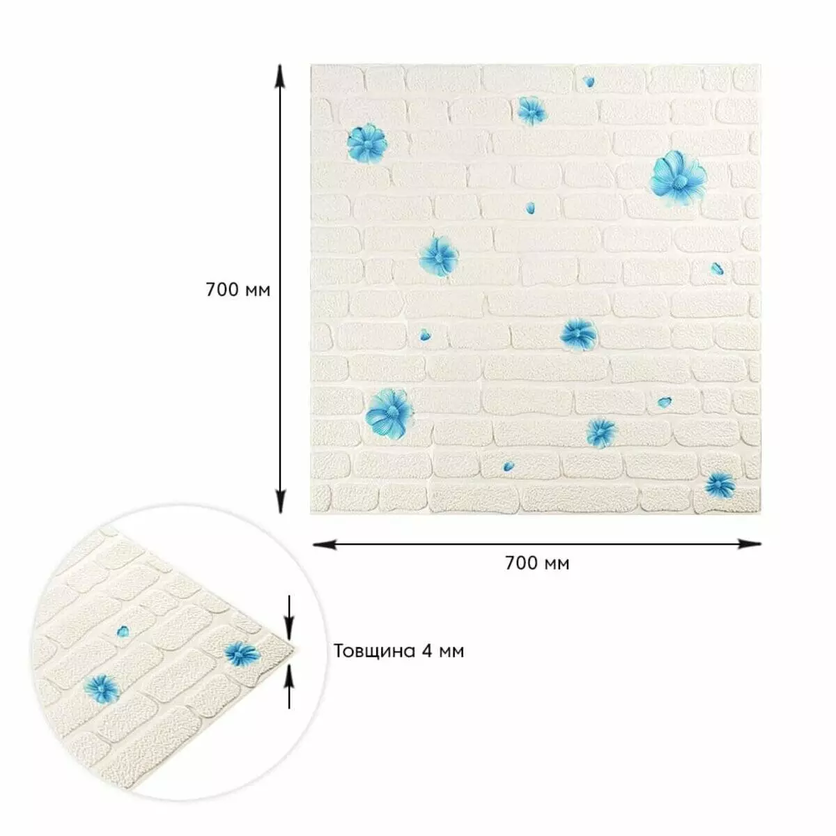 Панель стінова 3D 700х700х4мм Блакитні квіти SW-00001977