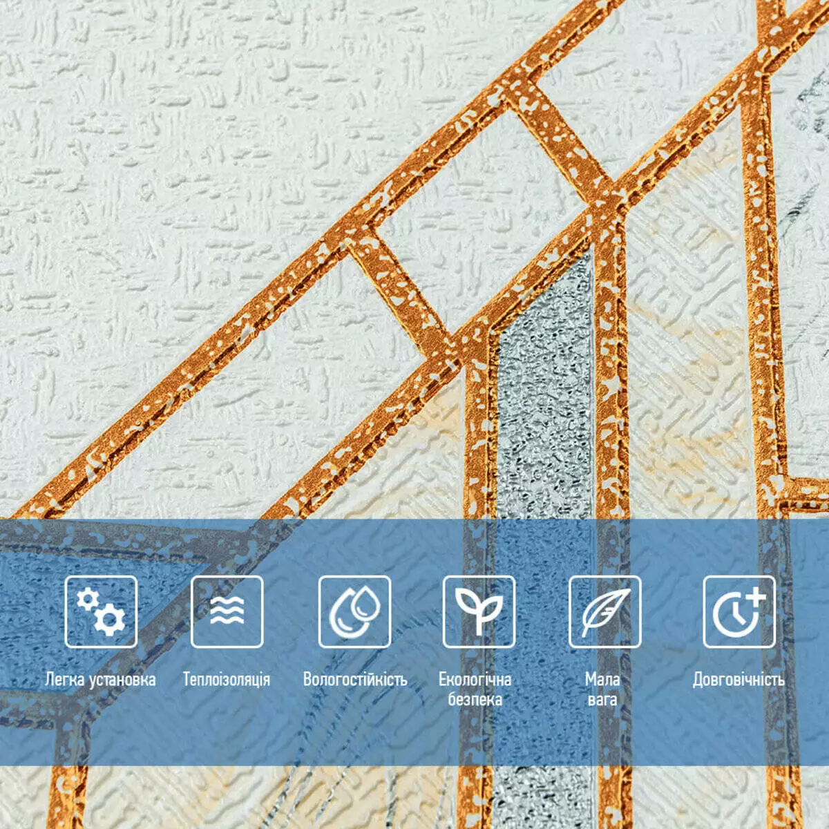 - Легкість монтажу: наявність клейового шару дозволяє встановити панелі без необхідності застосування додаткових матеріалів.