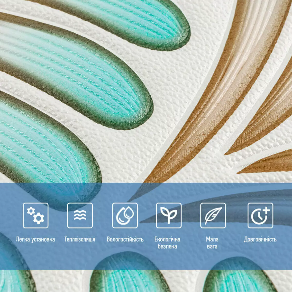 - Легкість монтажу: наявність клейового шару дозволяє встановити панелі без необхідності застосування додаткових матеріалів.