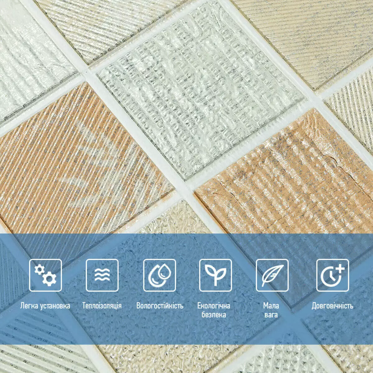 - Легкість монтажу: наявність клейового шару дозволяє встановити панелі без необхідності застосування додаткових матеріалів.