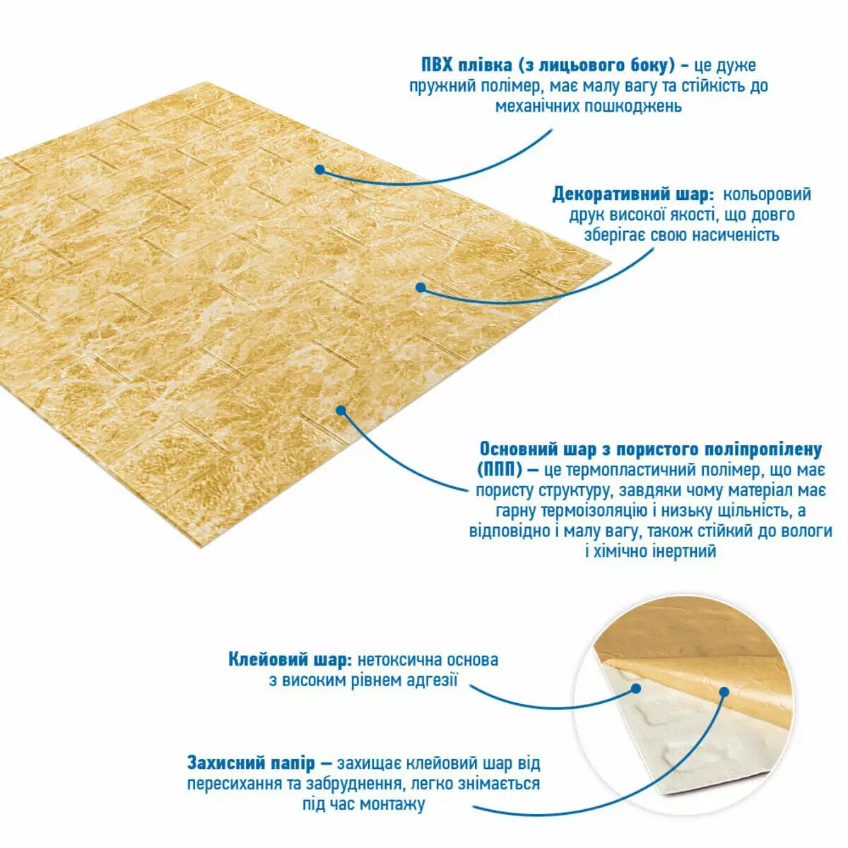 Панель стінова 3D 700х770х2мм (062-2) Мармур Бежевий SW-00001911