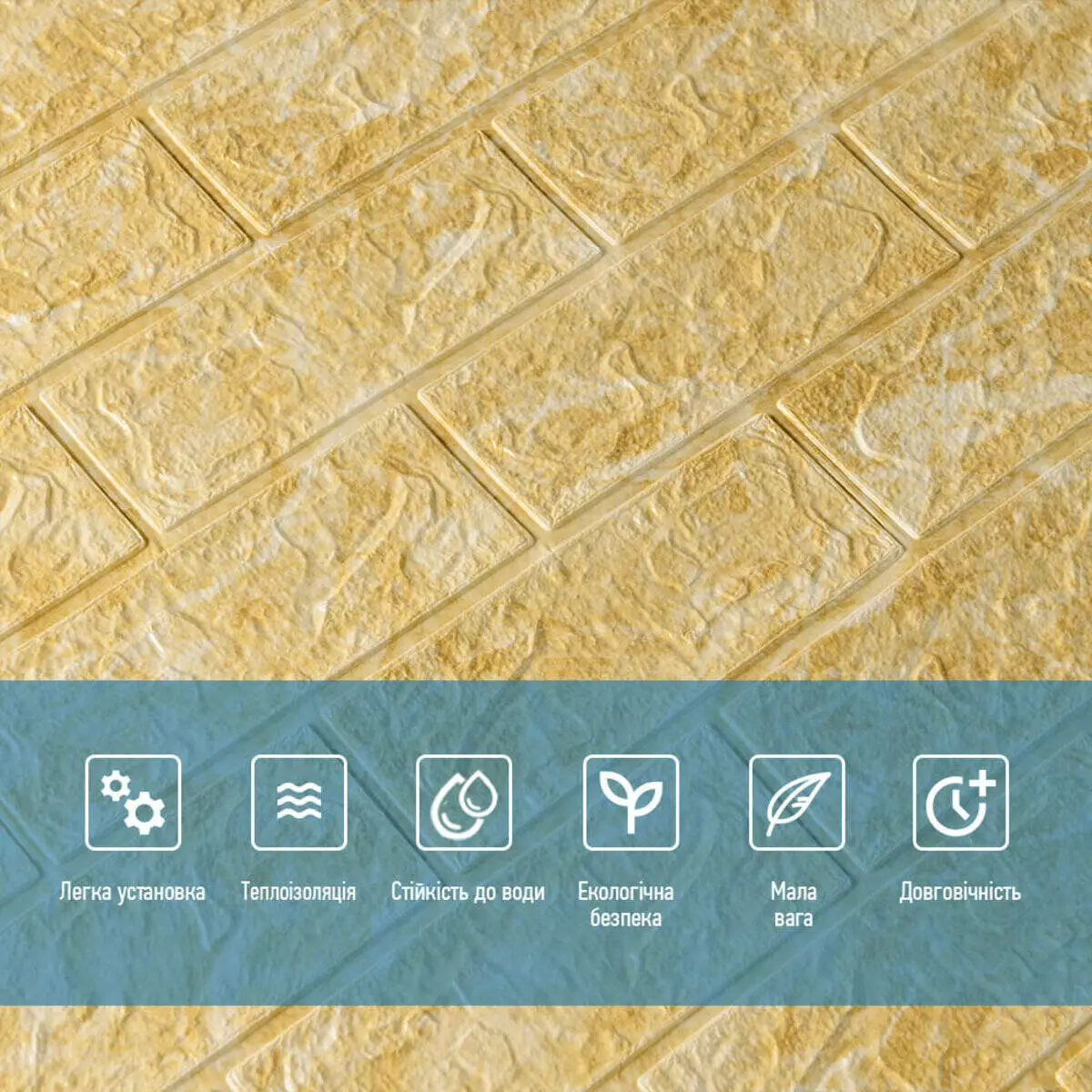 3D панелі самоклеючі – декоративне покриття для стін, виконане з легкого та міцного матеріалу – пористого поліпропілену (ППП). Основна особливість – рельєфний малюнок у вигляді цегли у широкому різноманітті кольорів та наявність клейового шару, що дозволяє встановити панелі без необхідності застосування додаткових матеріалів.