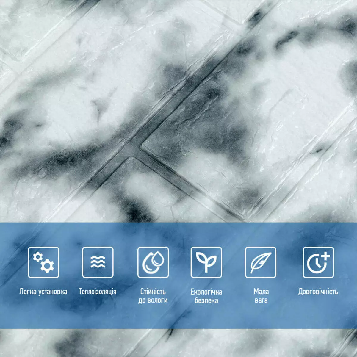 - Легкість монтажу: наявність клейового шару дозволяє встановити панелі без необхідності застосування додаткових матеріалів.