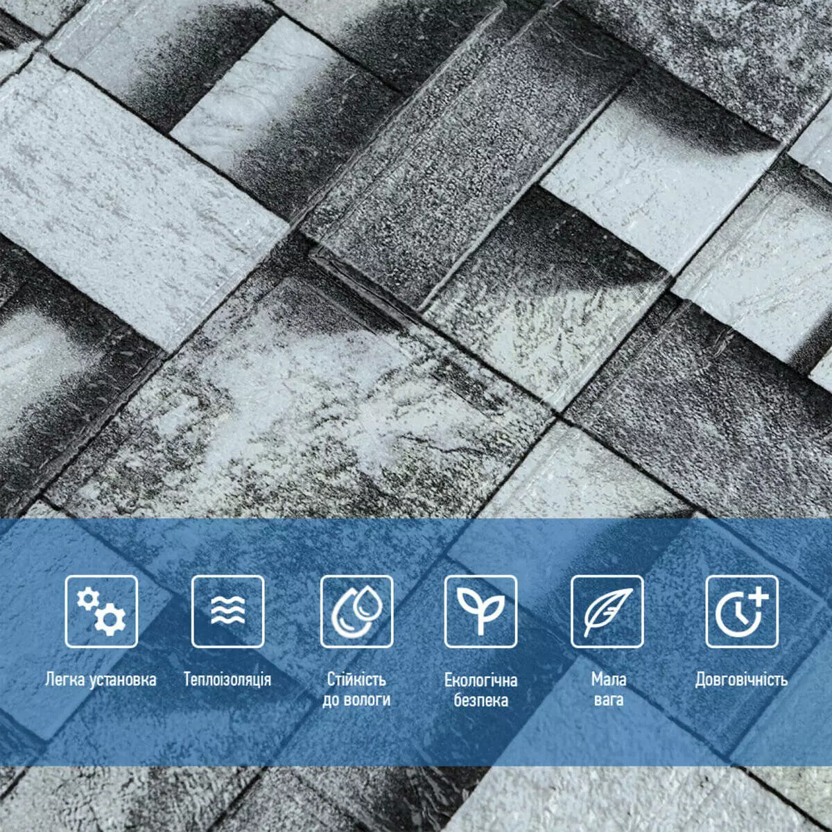 - Легкість монтажу: наявність клейового шару дозволяє встановити панелі без необхідності застосування додаткових матеріалів.