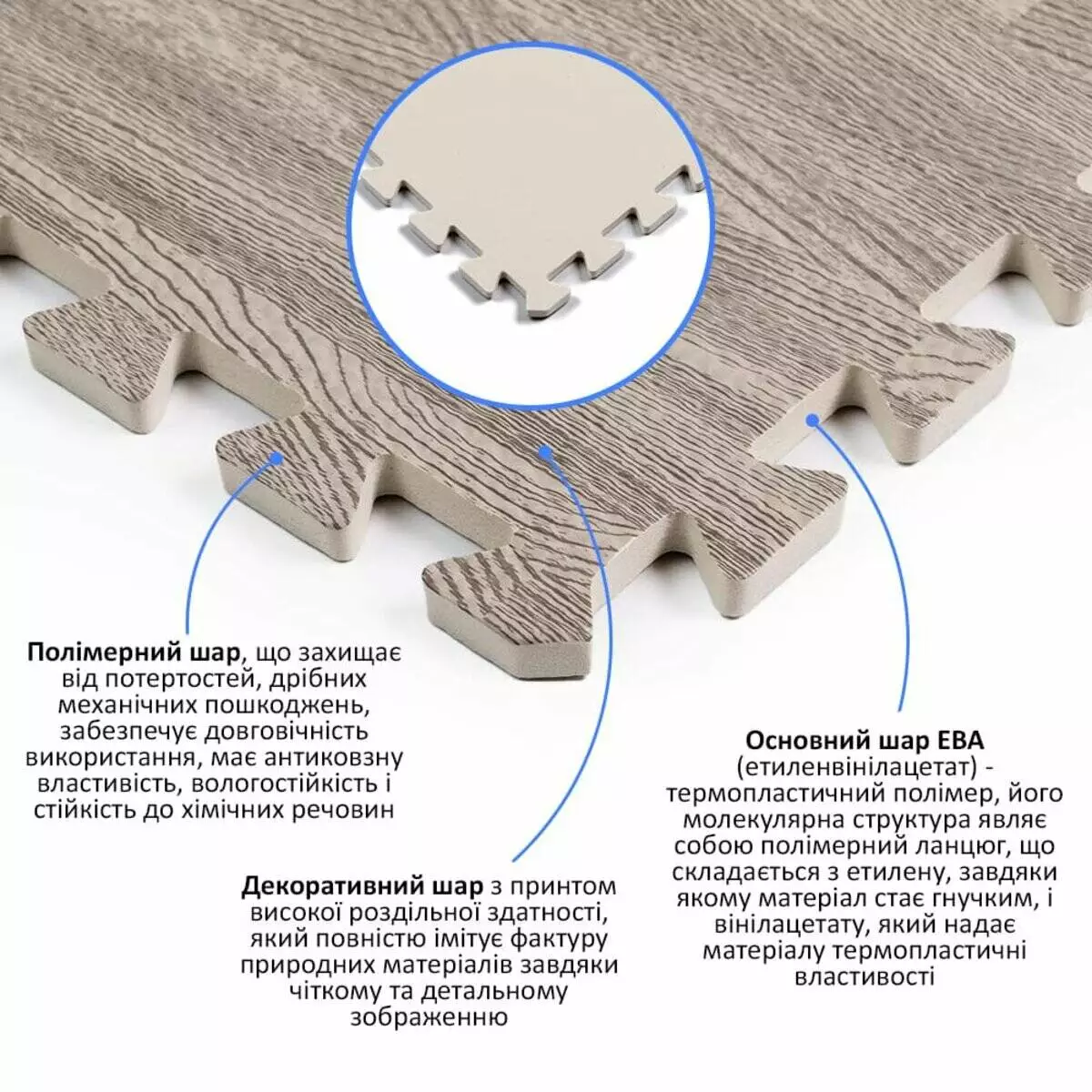 Підлога пазл - модульне підлогове покриття 600x600x10мм Сіре дерево (МР9) SW-00000209