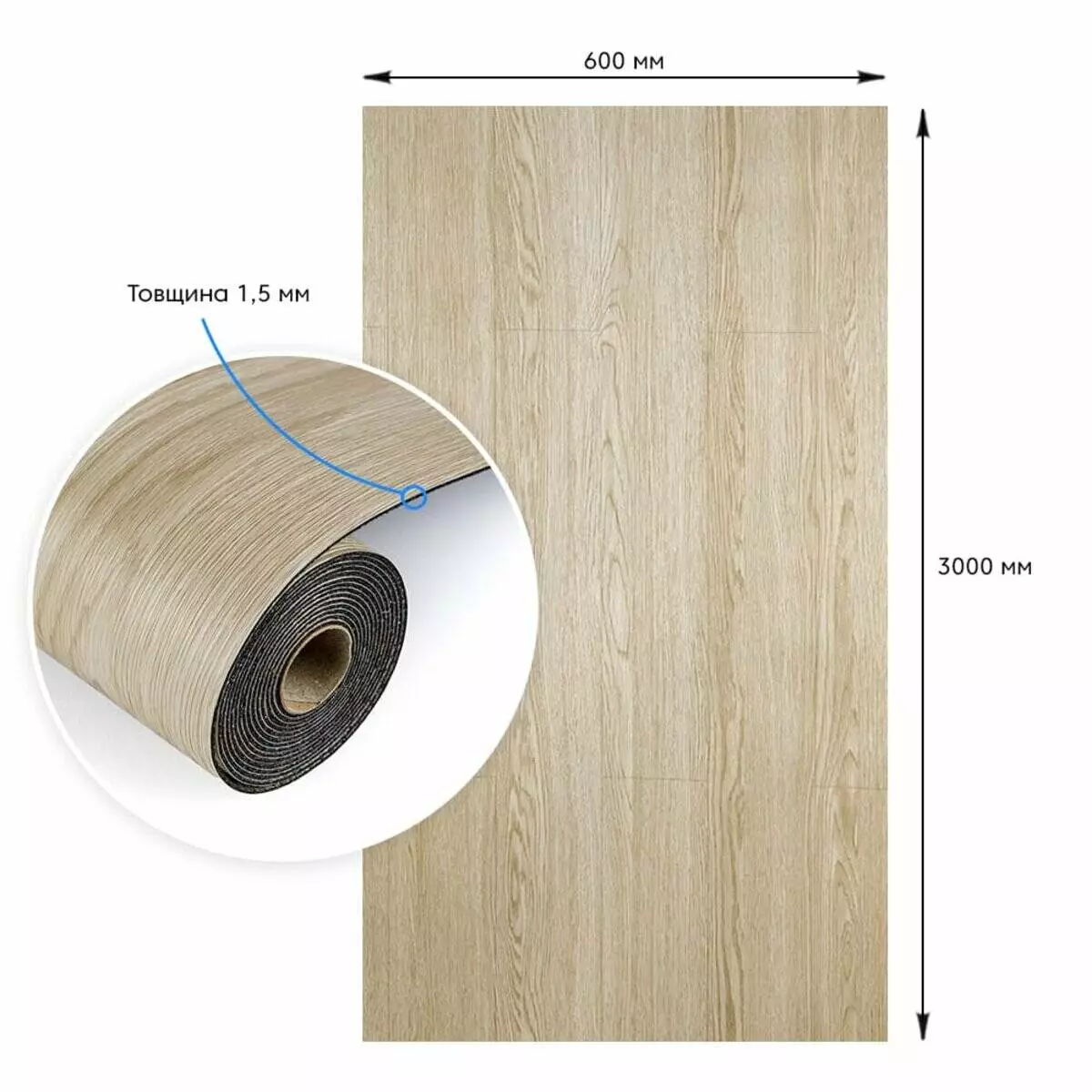 - Розмір: 3000*600*1,5мм