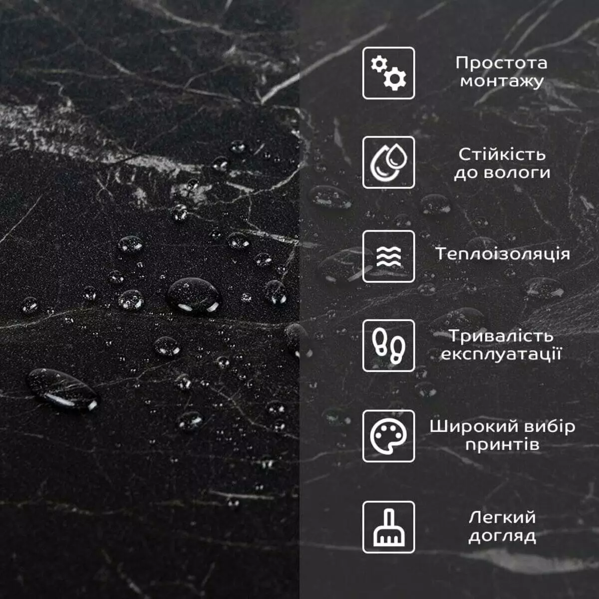- Декоративний шар: плівка з кольоровим друком високої роздільної здатності, яка повністю імітує фактуру природних матеріалів завдяки чіткому та детальному зображенню.
