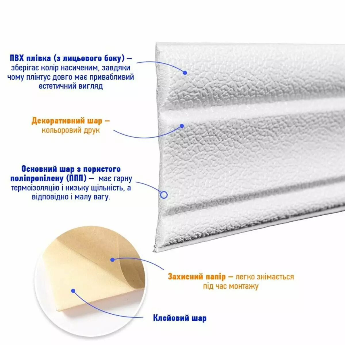 Плінтус ППППлінтус з пористого поліпропілену - декоративний елемент, який встановлюється вздовж нижньої частини стіни для прикриття стику між стіною та підлогою. Завдяки клейовій основі він легко монтується, без застосування додаткових матеріалів і є ідеальним доповненням у різних інтер’єрних рішеннях.