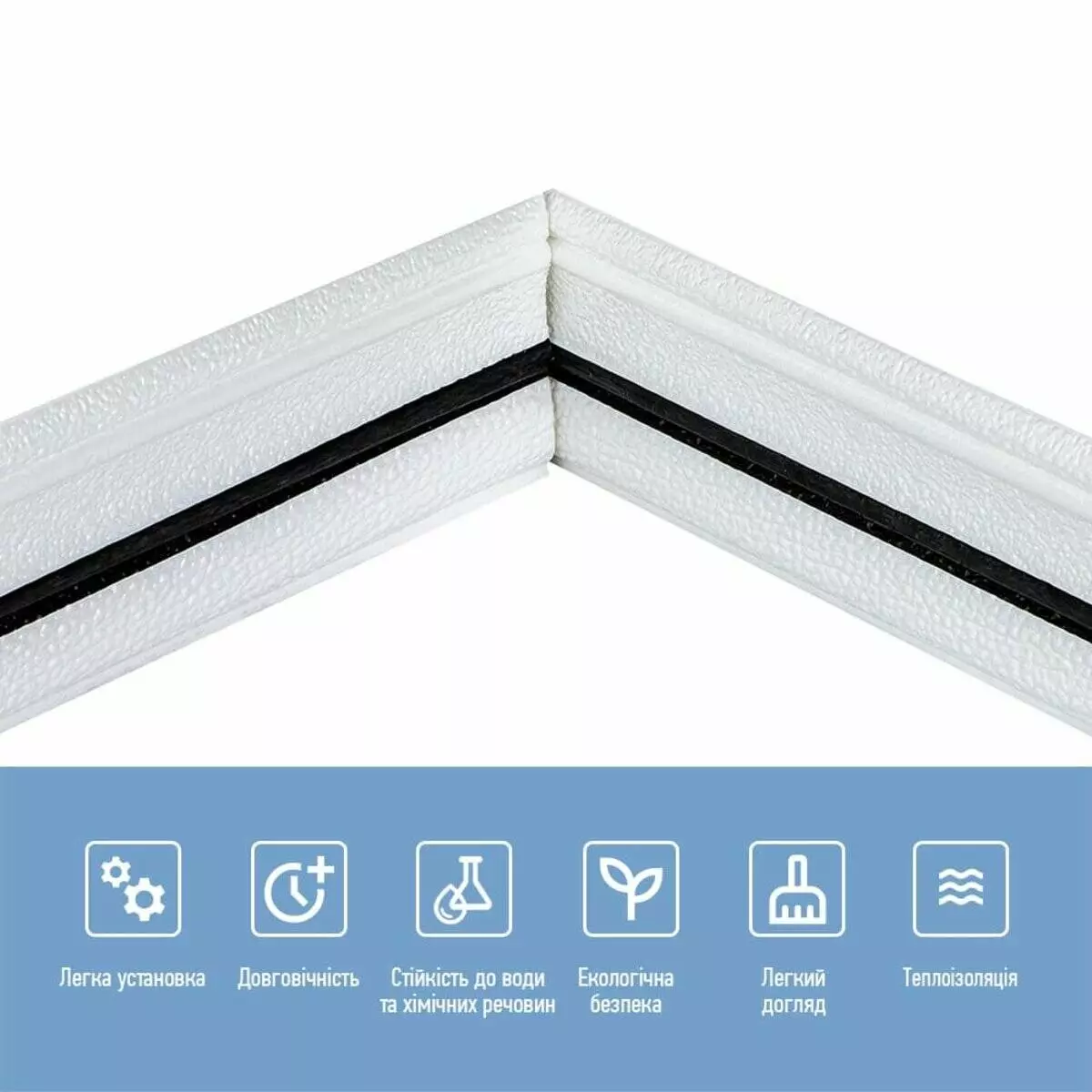 - Захисна плівка – захищає клейовий шар від пересихання та забруднення, легко знімається під час монтажу.