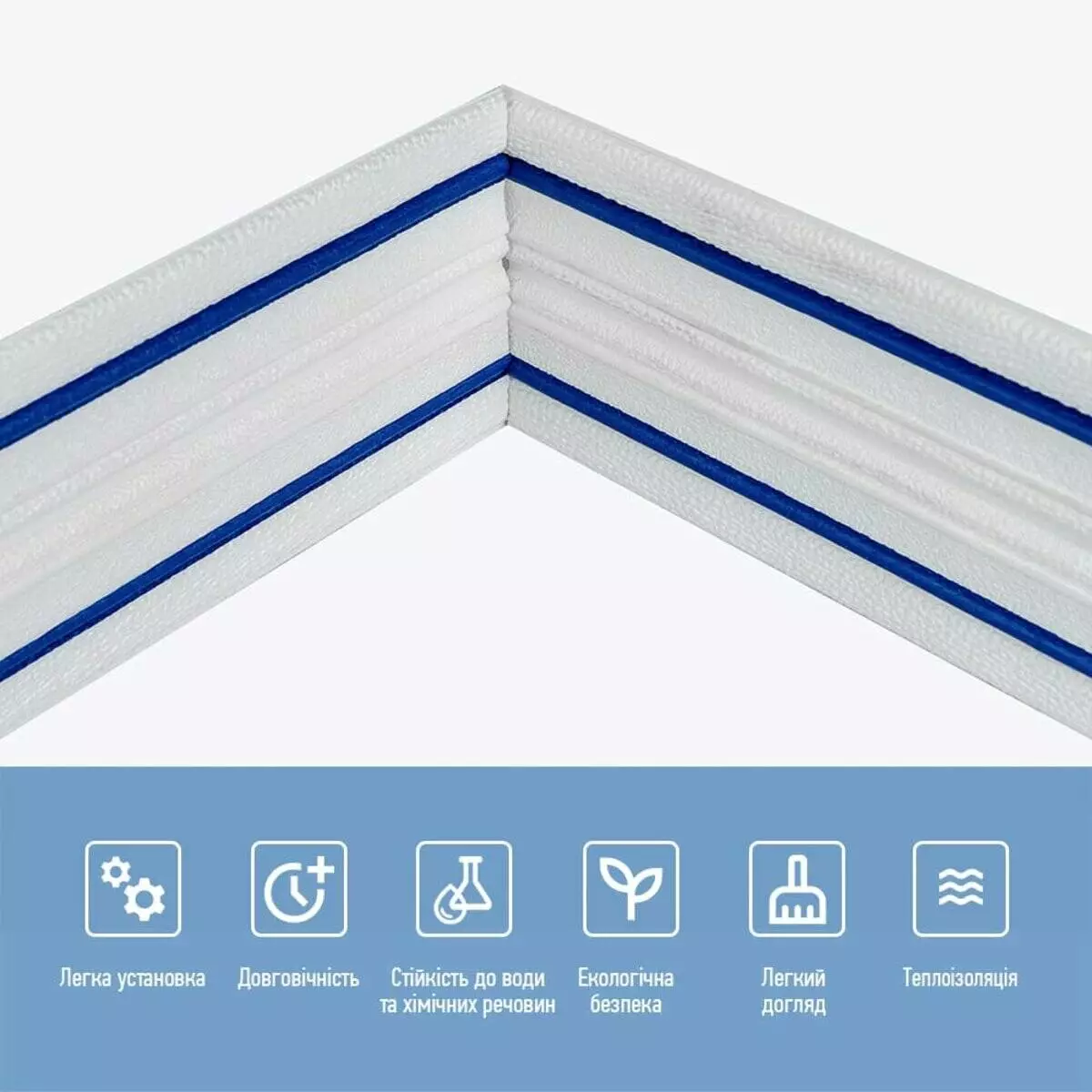 Плінтус РР самоклеючий 2300х140х4мм Білий з синьою смужкою (D) SW-00001811
