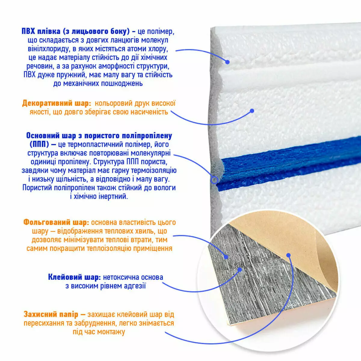 - Декоративний шар: кольоровий друк високої якості, що довго зберігає свою насиченість.