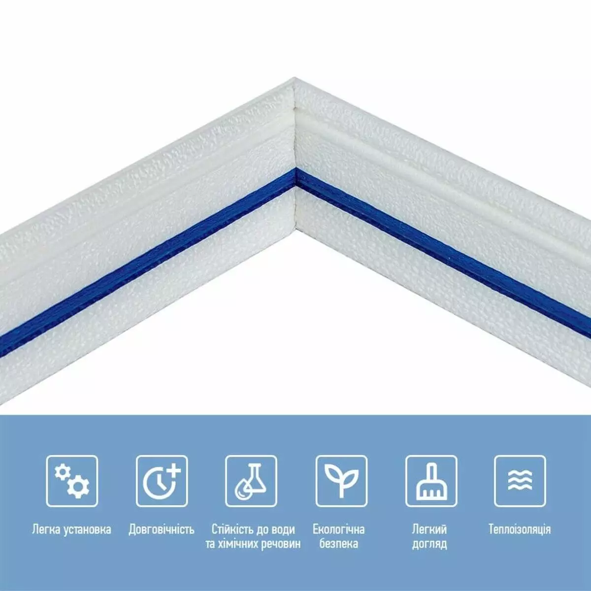 Плінтус РР самоклеючий 2300х70х4мм Білий з синьою смужкою (D) SW-00001831