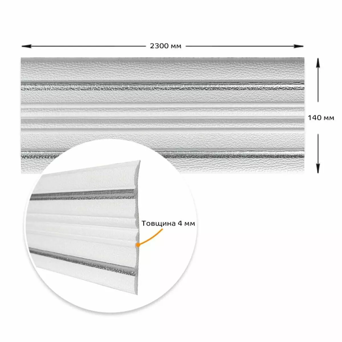 Розміри: 140 х 2300 х 4 мм