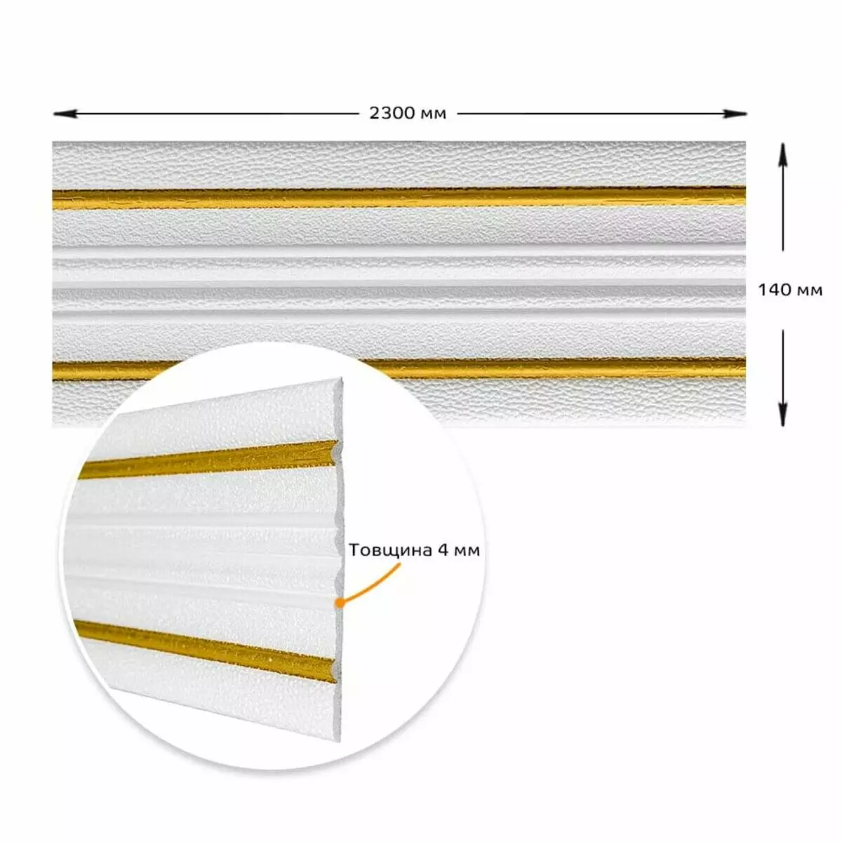 Плінтус РР самоклеючий 2300х140х4мм Білий з золотою смужкою (D) SW-00001812