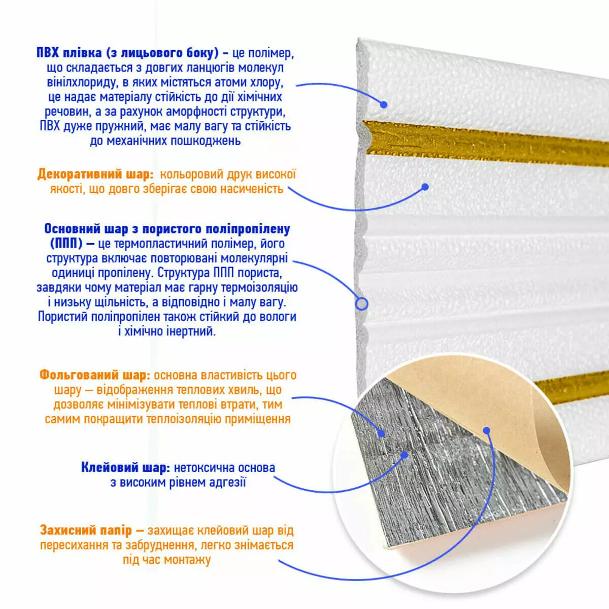 Плінтус ППППлінтус з пористого поліпропілену - декоративний елемент, який встановлюється вздовж нижньої частини стіни для прикриття стику між стіною та підлогою. Завдяки клейовій основі він легко монтується, без застосування додаткових матеріалів і є ідеальним доповненням у різних інтер’єрних рішеннях.