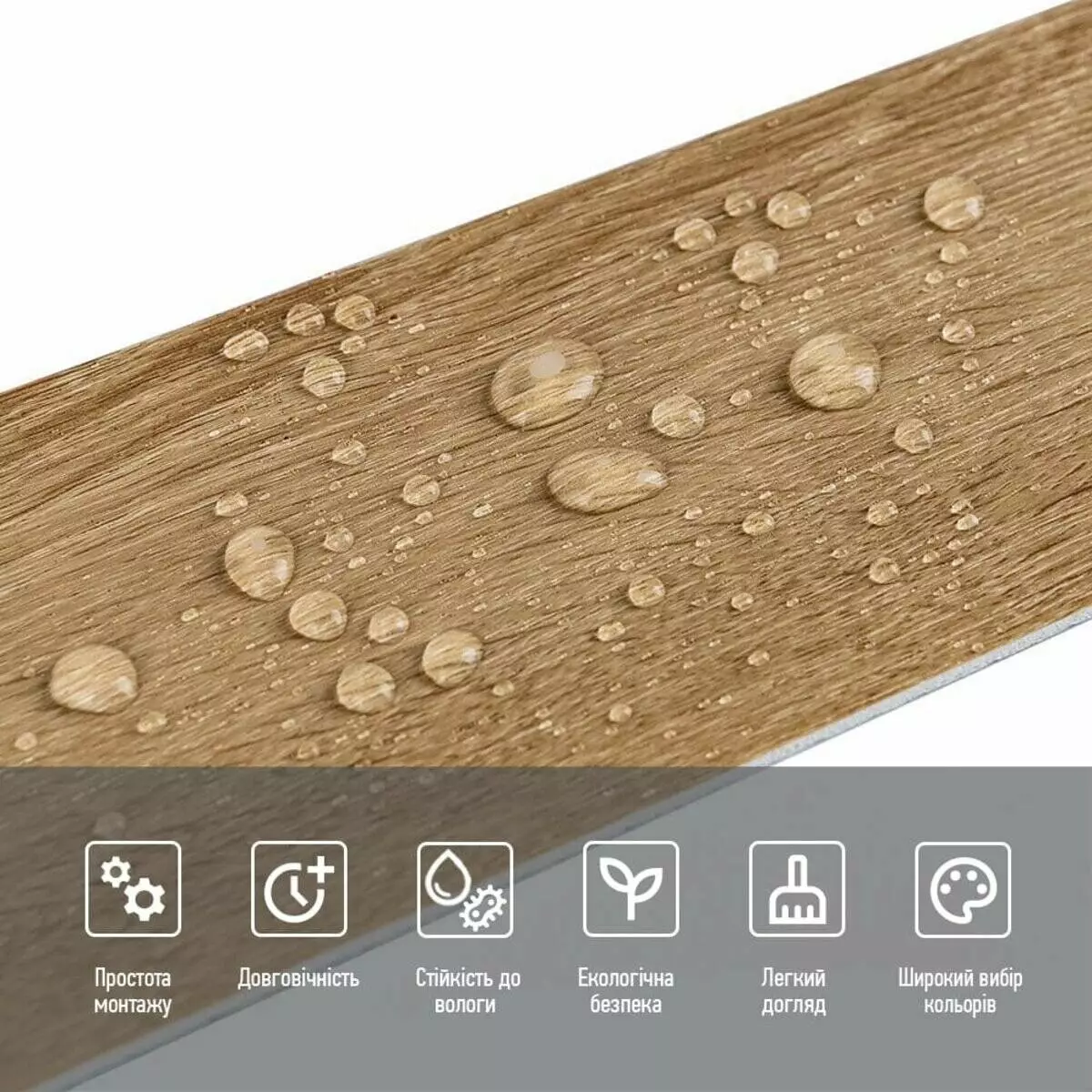 - Екологічна безпека: вінілові плінтуси виготовляють з відновлювальних ресурсів, а сам матеріал безпечний для здоров'я та навколишнього середовища.