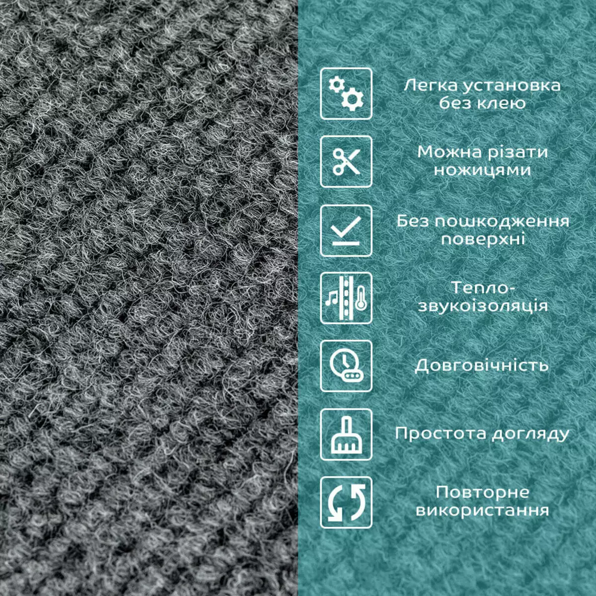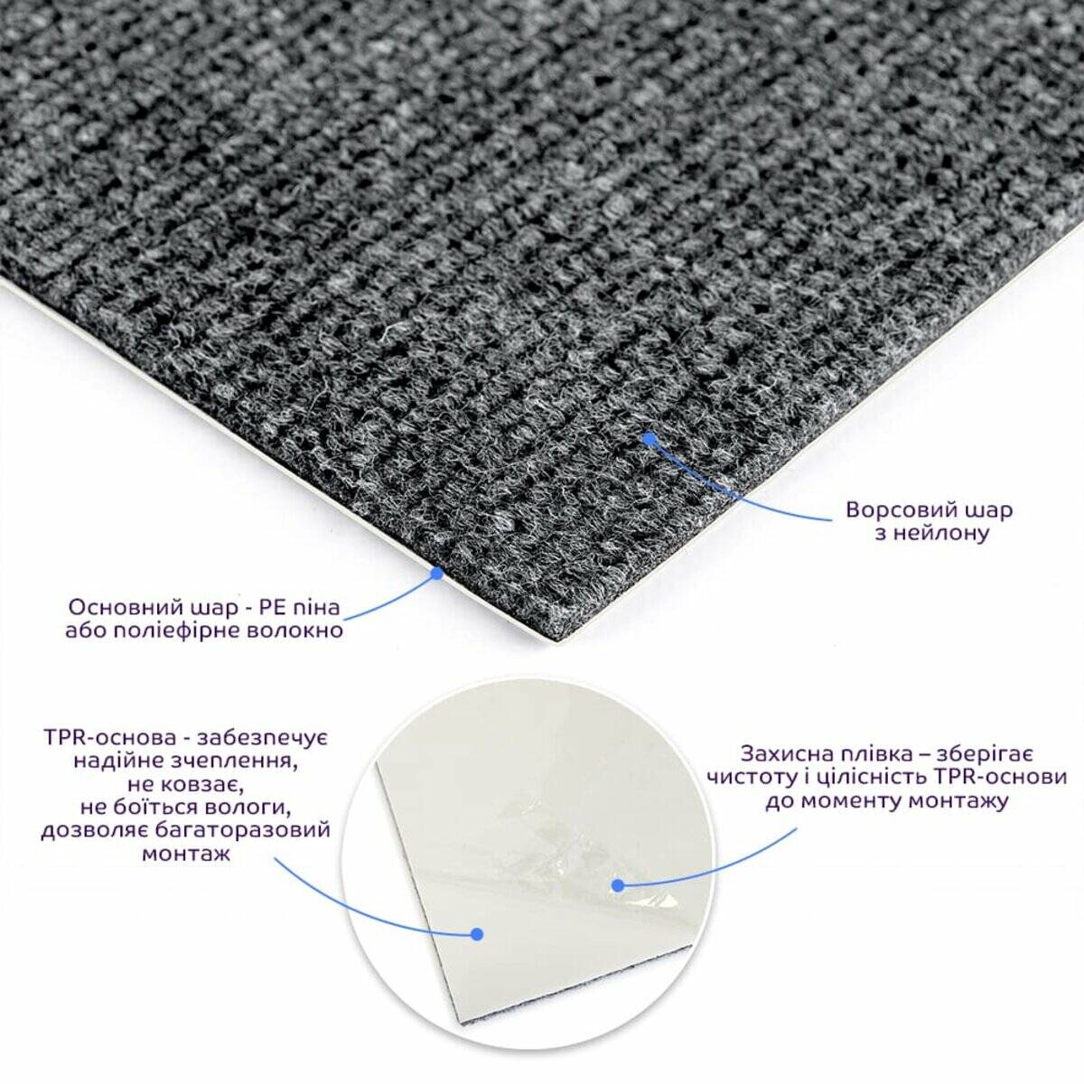 Плитка ковролінова з TPR основою багаторазова темно-сіра 300х300х4мм SW-00002801