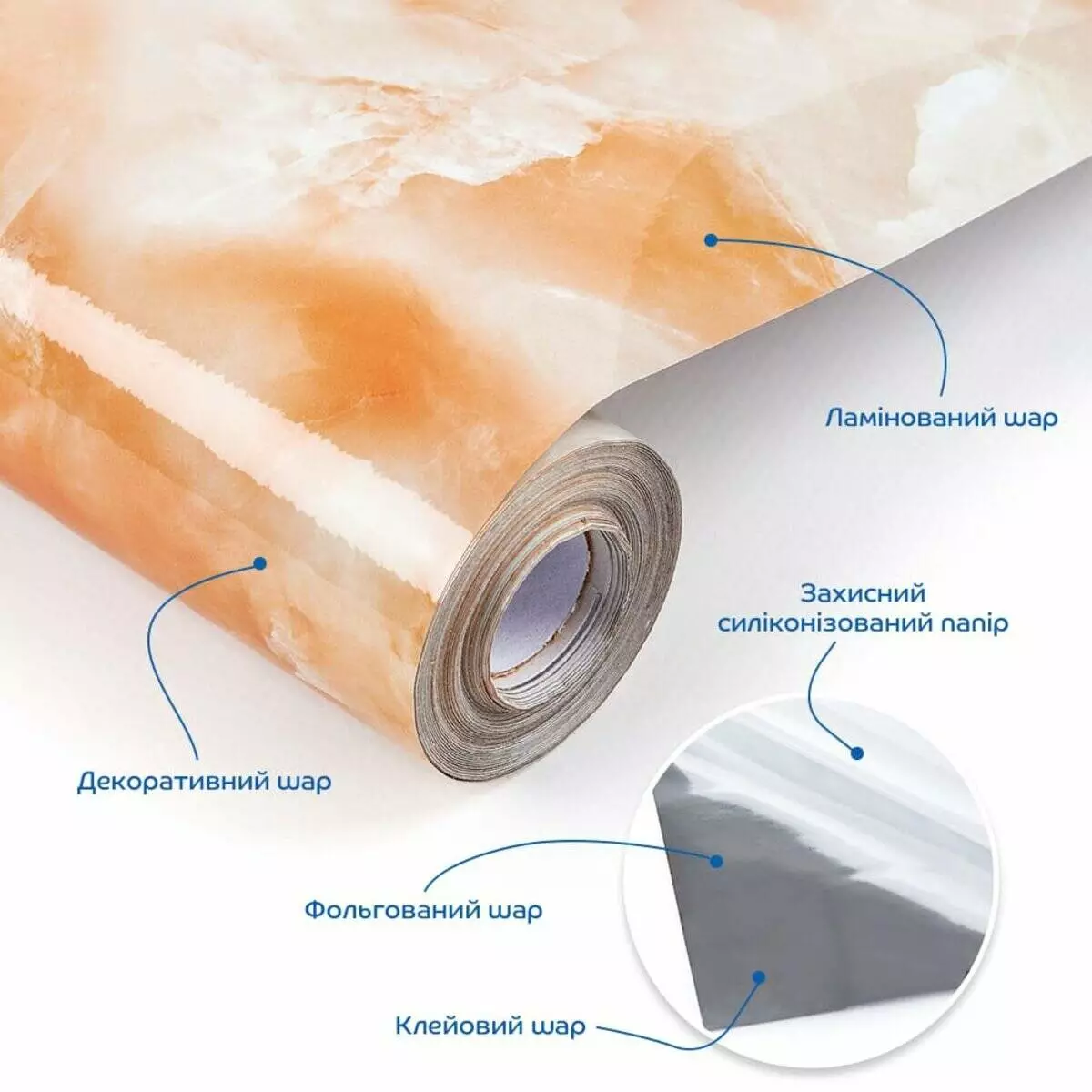 • Декоративний шар. Під ламінацією знаходиться шар з декоративним друком, на якому зображено малюнок або текстура, що імітують дерево, мармур, плитку чи інші матеріали. Цей шар надає плівці візуальну привабливість, що підходить для різноманітних інтер’єрних рішень.
