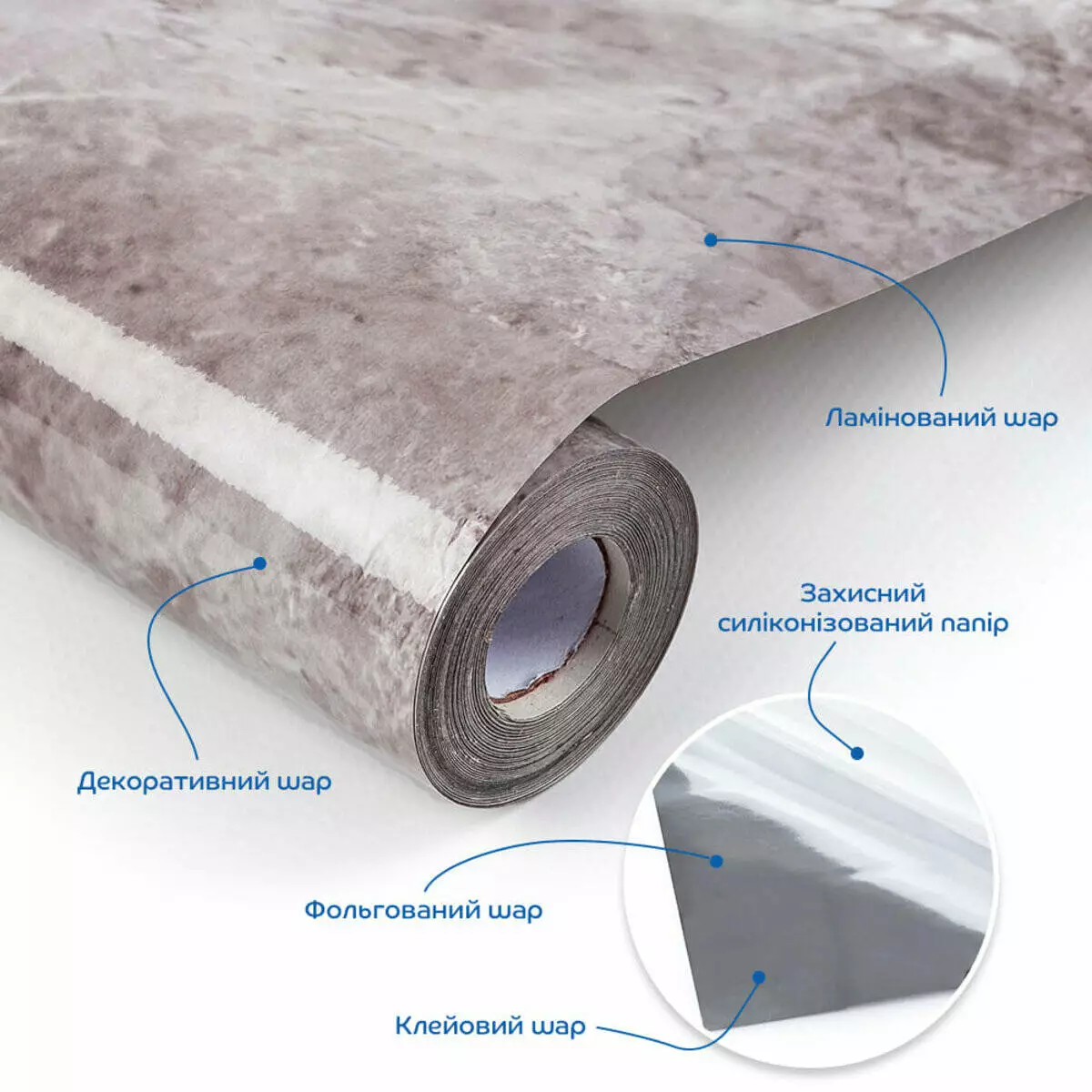 • Декоративний шар. Під ламінацією знаходиться шар з декоративним друком, на якому зображено малюнок або текстура, що імітують дерево, мармур, плитку чи інші матеріали. Цей шар надає плівці візуальну привабливість, що підходить для різноманітних інтер’єрних рішень.