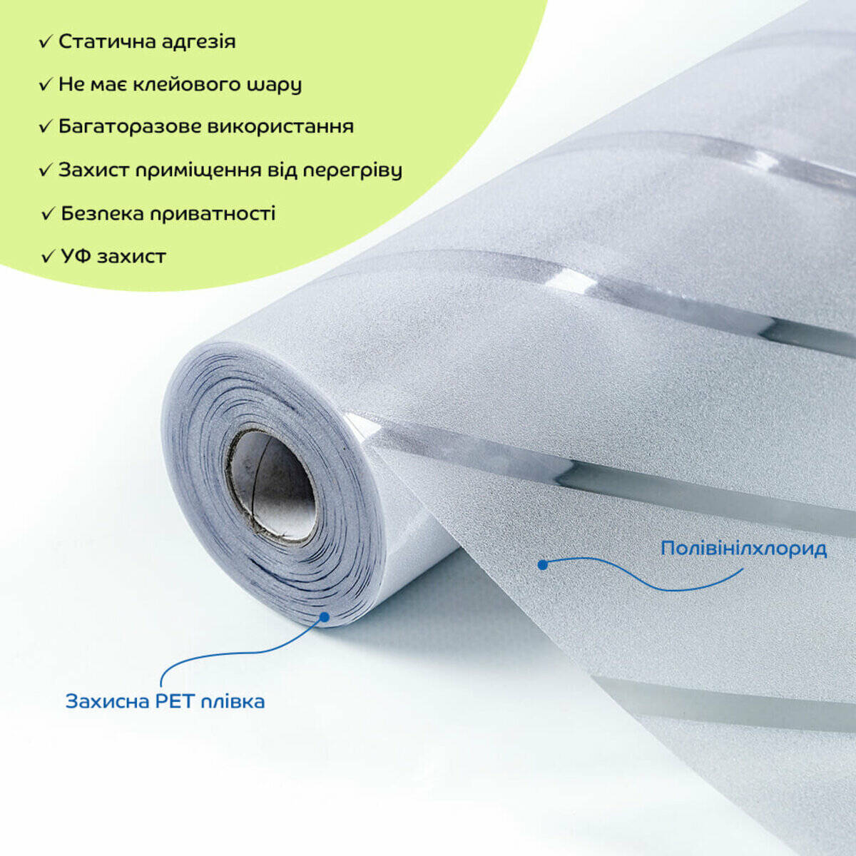 Віконна ПВХ-плівка – це декоративний матеріал, призначений для прикраси скляних поверхонь. Вона забезпечує приватність, захищає від ультрафіолетового випромінювання та додає естетичної привабливості вашому інтер'єру. Легко наноситься на будь-яке скло, перетворюючи його на непрозору поверхню та обмежуючи видимість через скло.