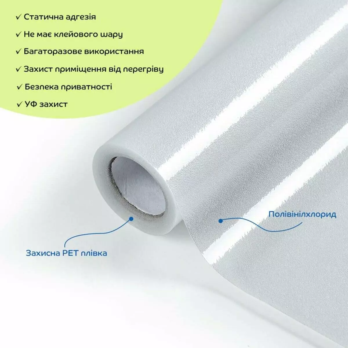 Віконна ПВХ-плівка – це декоративний матеріал, призначений для прикраси скляних поверхонь. Вона забезпечує приватність, захищає від ультрафіолетового випромінювання та додає естетичної привабливості вашому інтер'єру. Легко наноситься на будь-яке скло, перетворюючи його на непрозору поверхню та обмежуючи видимість через скло.