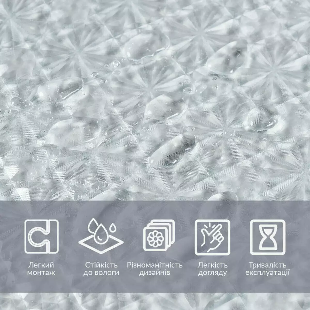 Фактура: призматична (переломлює світло, утворюючи красиві відблиски та візерунки, що нагадують грані призм або скла).