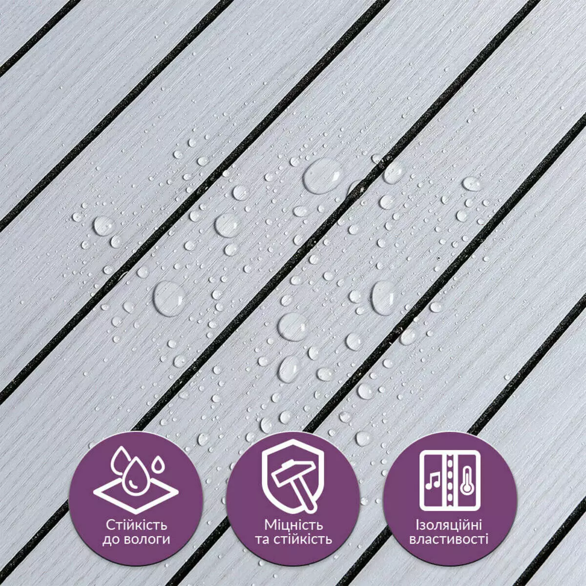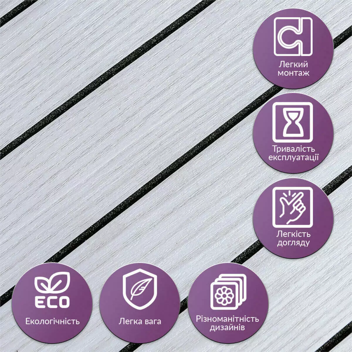 - Легкий догляд: Вінілові рейки легко миються, не вимагають спеціальних засобів для очищення і не вбирають бруд.