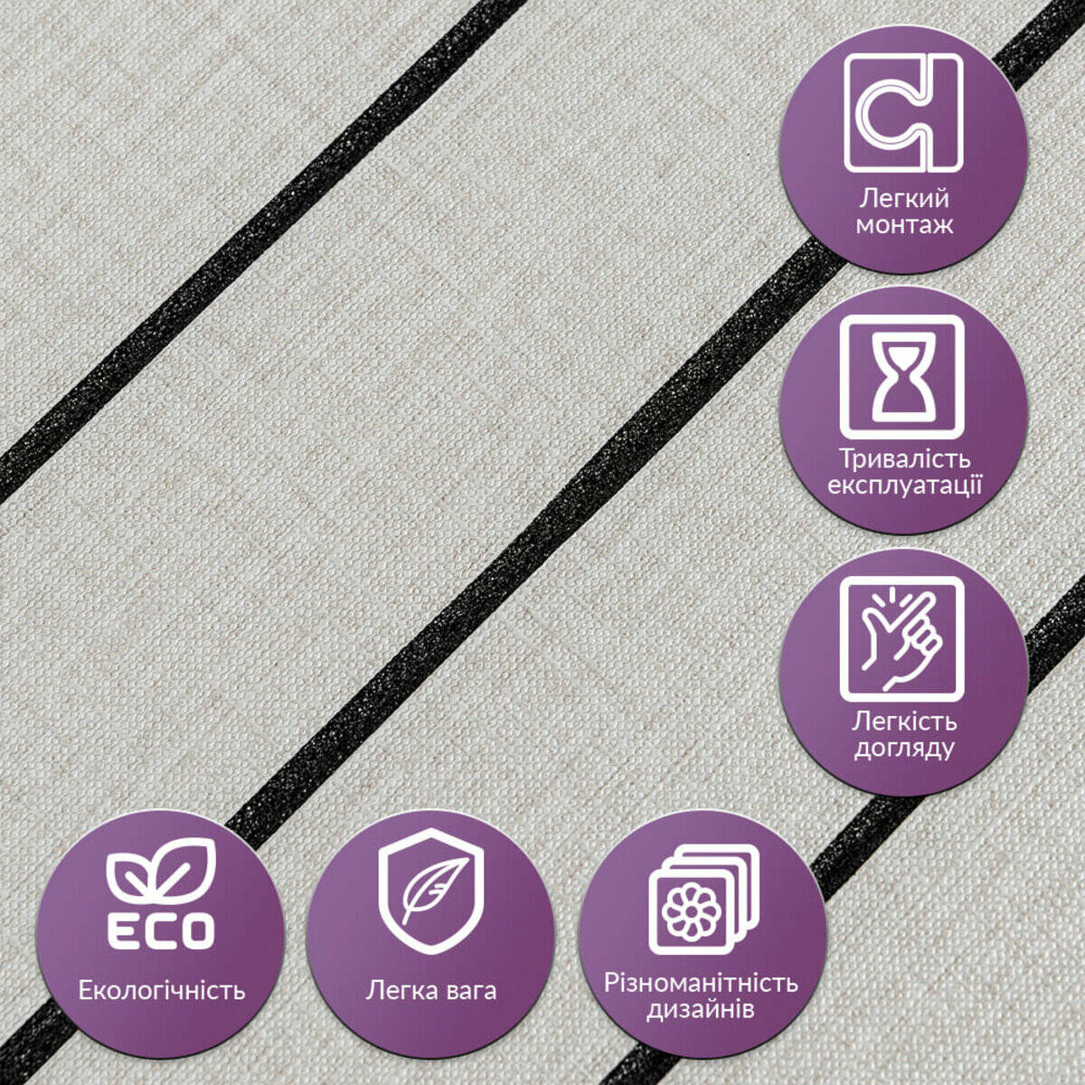 - Тонкий профіль з 3D-ефектом: Завдяки товщині 2,8 мм, рейки створюють привабливий 3D-ефект, не займаючи простір. Це робить їх ідеальними для використання в приміщеннях з обмеженим простором, таких як маленькі кімнати, коридори або офісні кабінети.