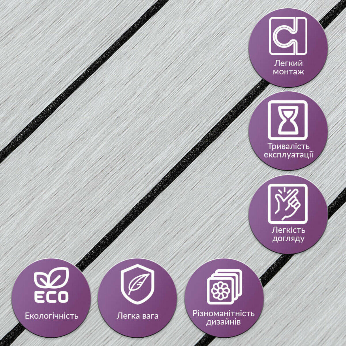 - Легкий догляд: Вінілові рейки легко миються, не вимагають спеціальних засобів для очищення і не вбирають бруд.