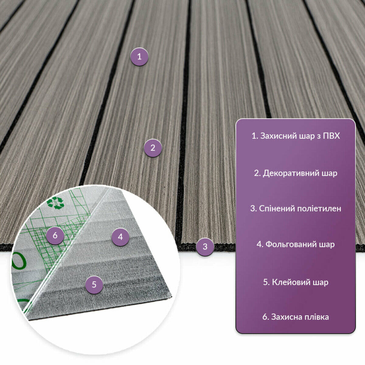 - Легкий догляд: Вінілові рейки легко миються, не вимагають спеціальних засобів для очищення і не вбирають бруд.