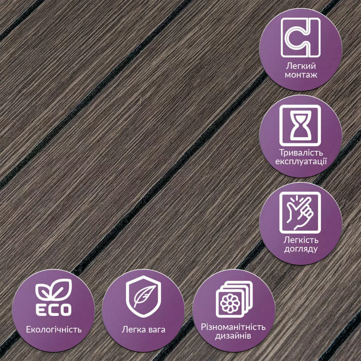 - Легкий догляд: Вінілові рейки легко миються, не вимагають спеціальних засобів для очищення і не вбирають бруд.