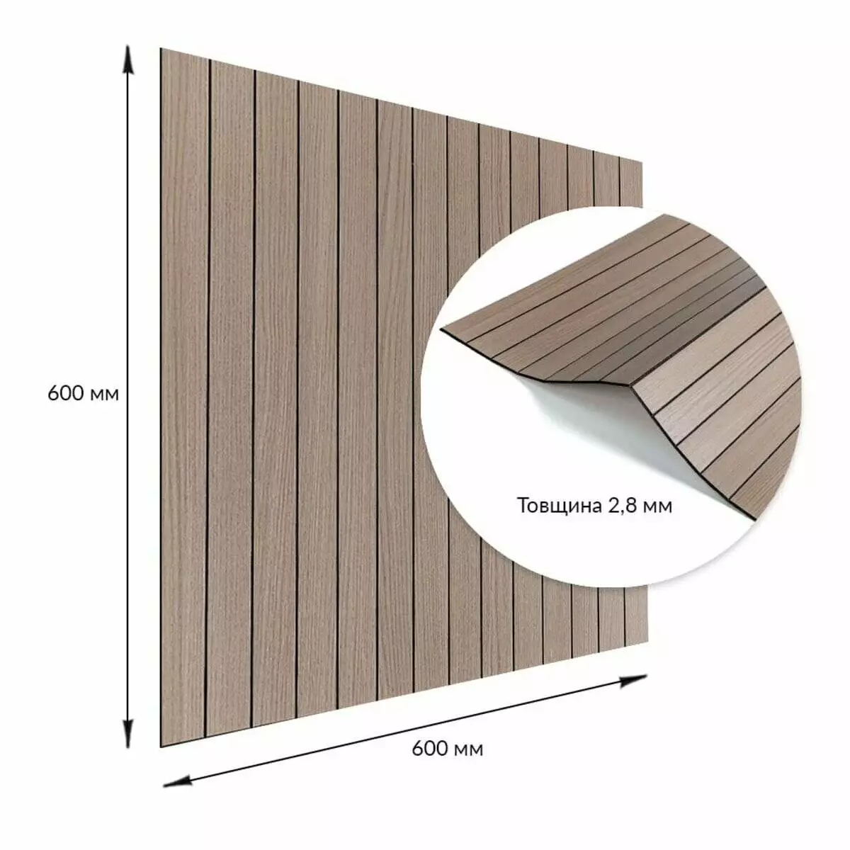 Покриття вінілове самоклеюче 3D рейки 600х600х2,8мм Тік горіховий SW-00002202