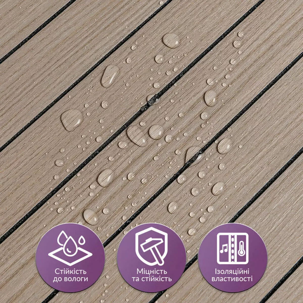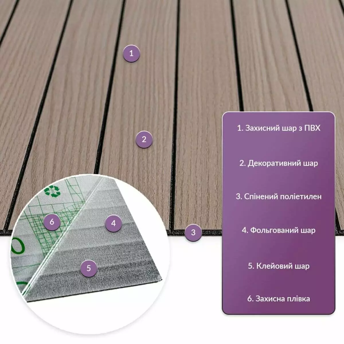 Фактура: рельєфна, імітація дерев'яної рейки. Поверхня матова.