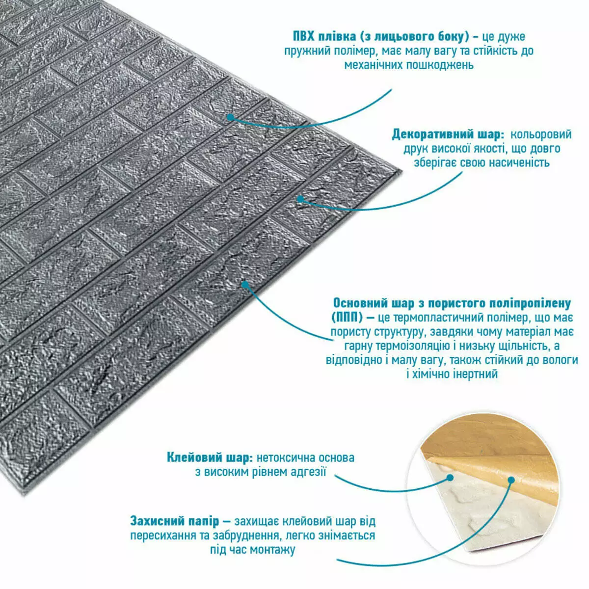 Самоклеюча 3D панель під сіра цеглу в рулоні 3080x700x2мм (R017-2)