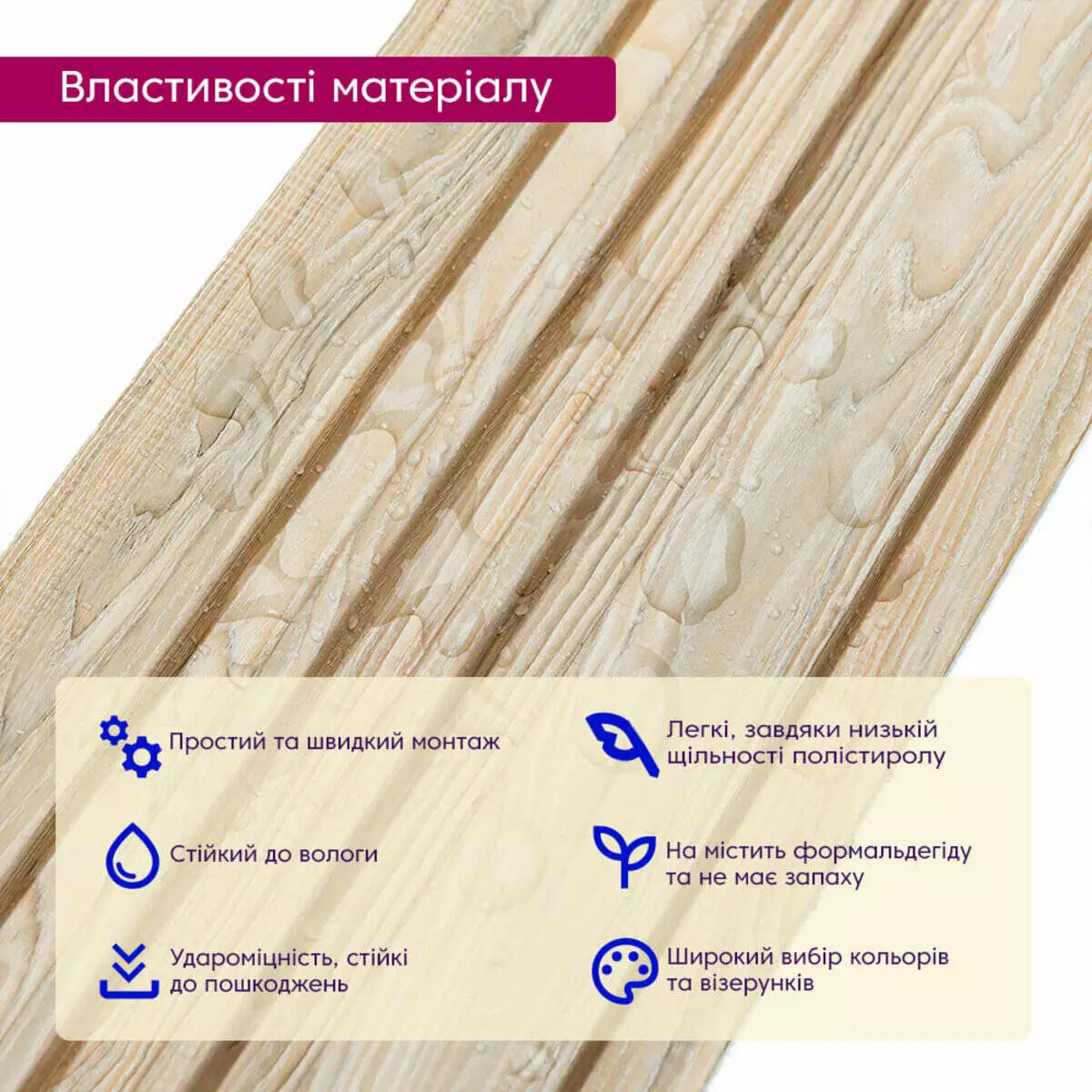 Стінова рейка є елементом для обробки внутрішніх стін в інтер'єрі, має зовнішній вигляд, що імітує текстуру дерева.
