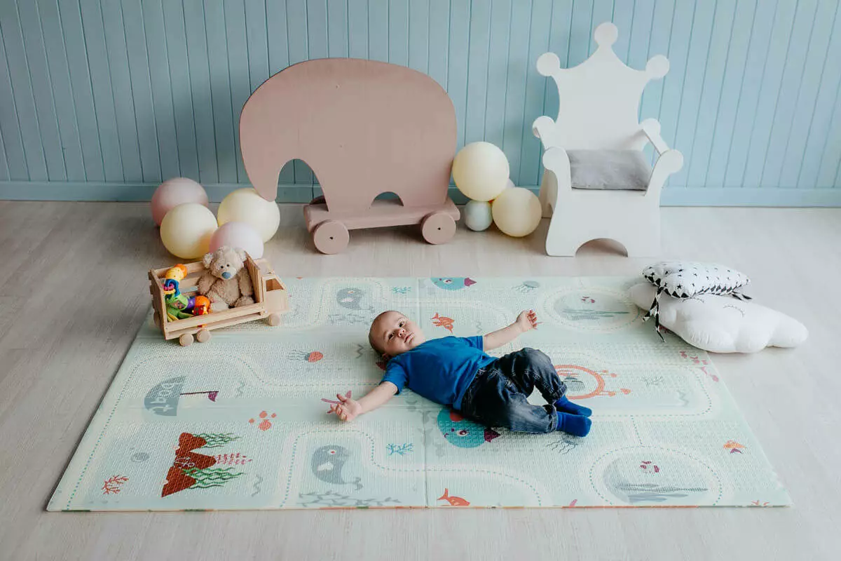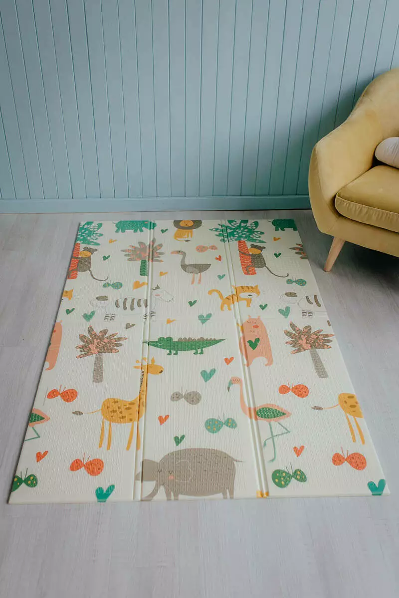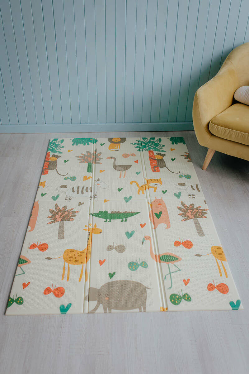 - Не пропускає холоду, а значить дитині буде комфортно грати на підлозі, навіть на плитці;