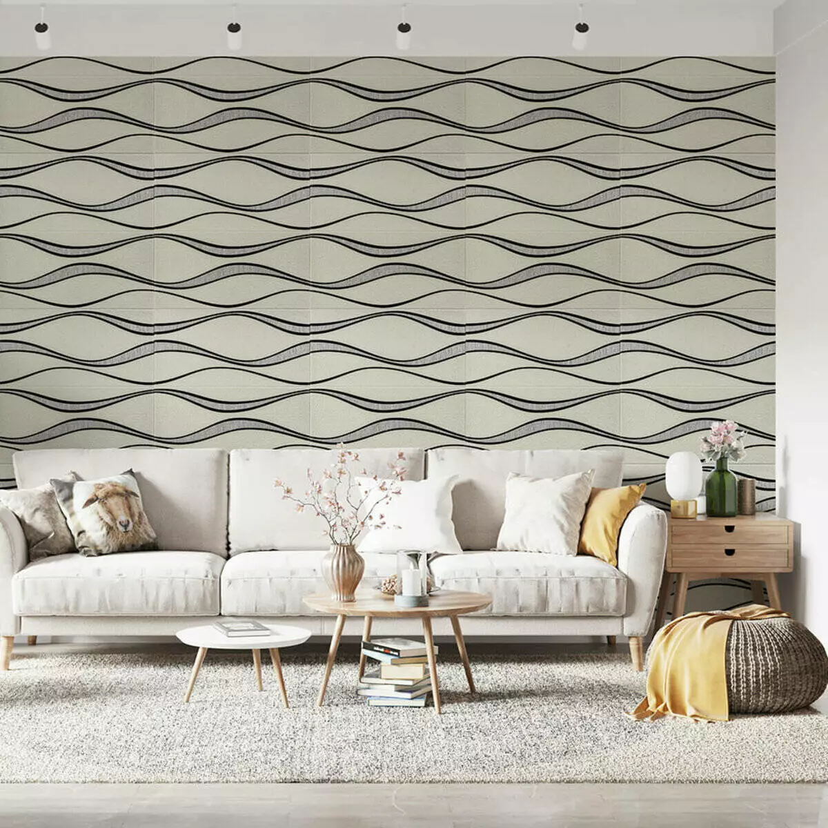 Самоклеюча 3D панель білі хвилі 700x700x5мм (195)(допустима похибка-3%)