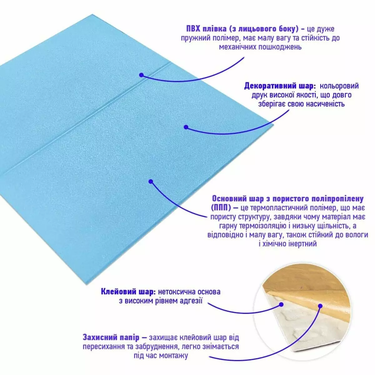 Самоклеюча 3D панель блакитні блоки 700х600х5мм (367)(допустима похибка-3%)