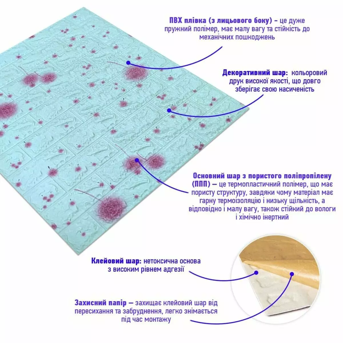 Самоклеюча 3D панель 700х770х4мм Блакитні кульбаби (322) SW-00001362