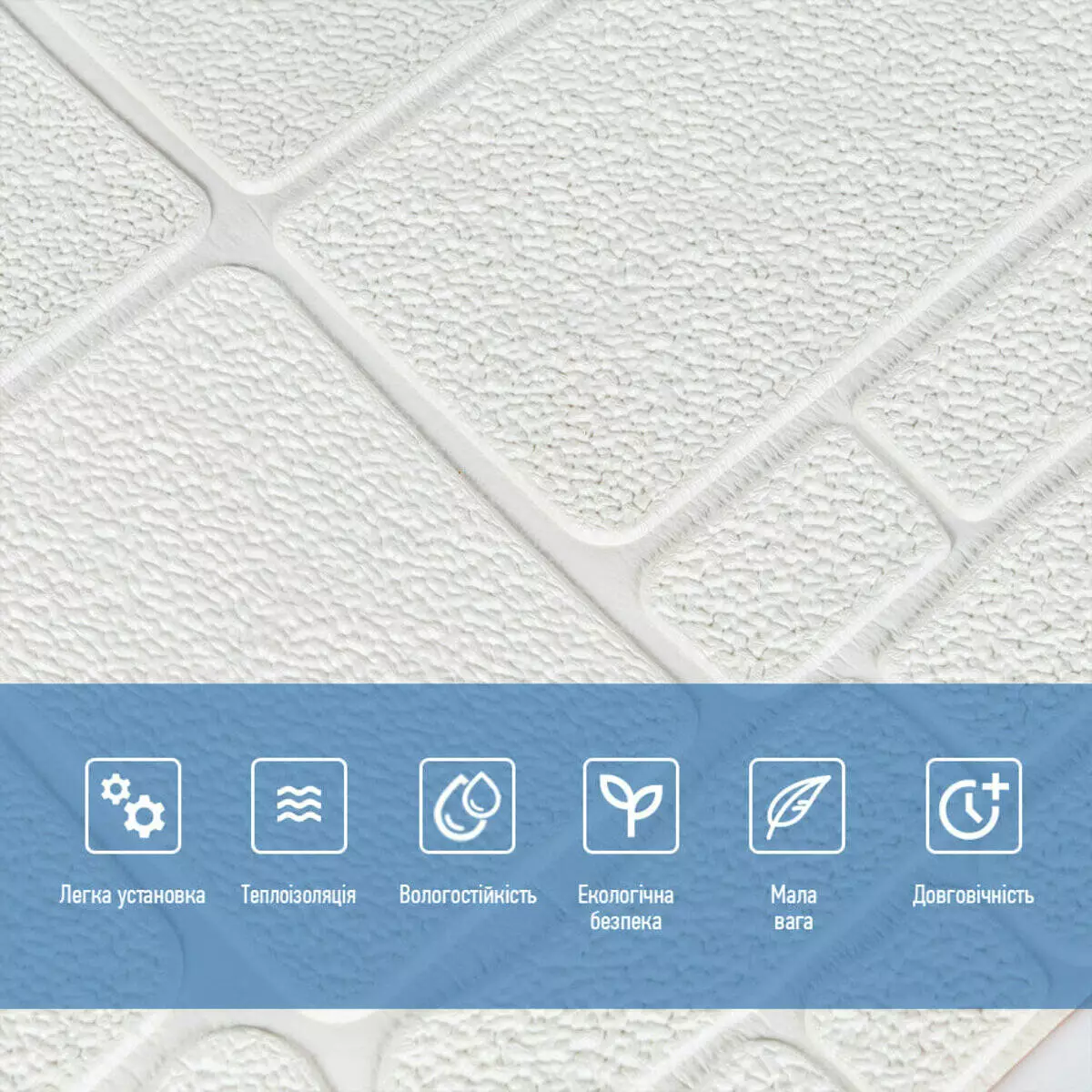 Декоративна панель під камінь виготовлена із спіненого поліпропілену. Це універсальний і щільний матеріал, але водночас легкий. Його термін служби понад 20 років. Самоклеючі 3D панелі з поліпропілену - це швидкий ремонт з мінімумом шуму та будівельного сміття.