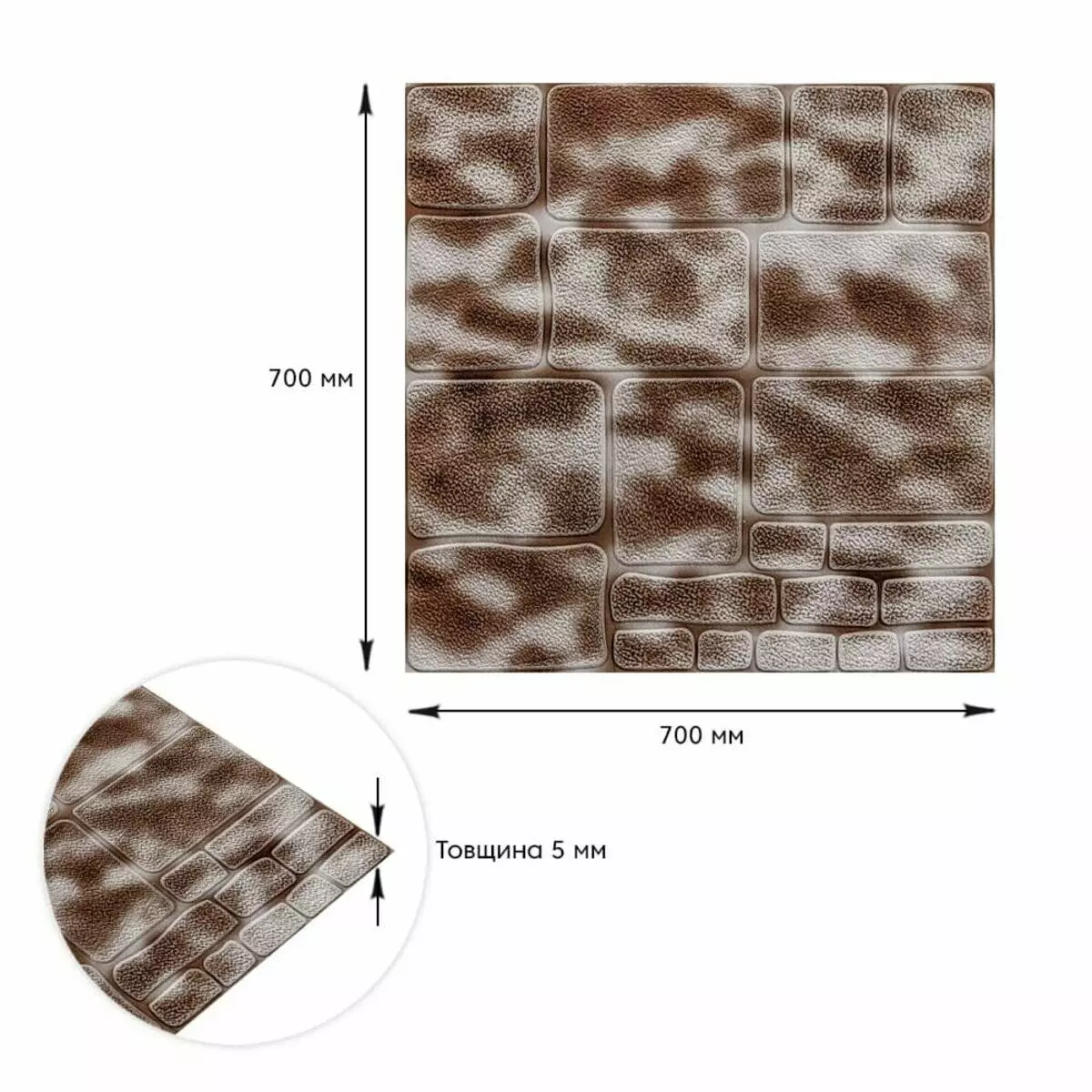 Самоклеюча 3D панель камінь кава 700х700х5мм (150)