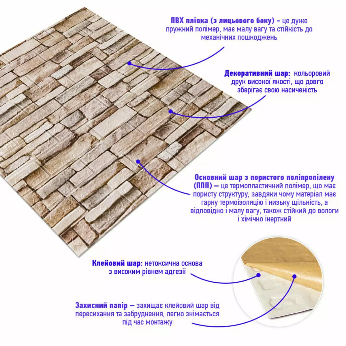 - Легкість монтажу: наявність клейового шару дозволяє встановити панелі без необхідності застосування додаткових матеріалів.