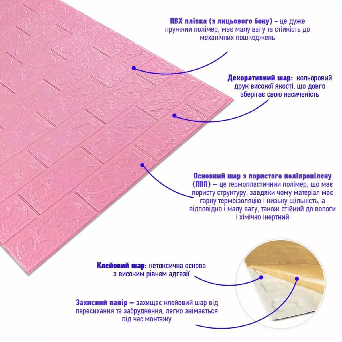 Самоклеюча 3D панель під Рожеву Цеглу 3080x700x3мм SW-00001757