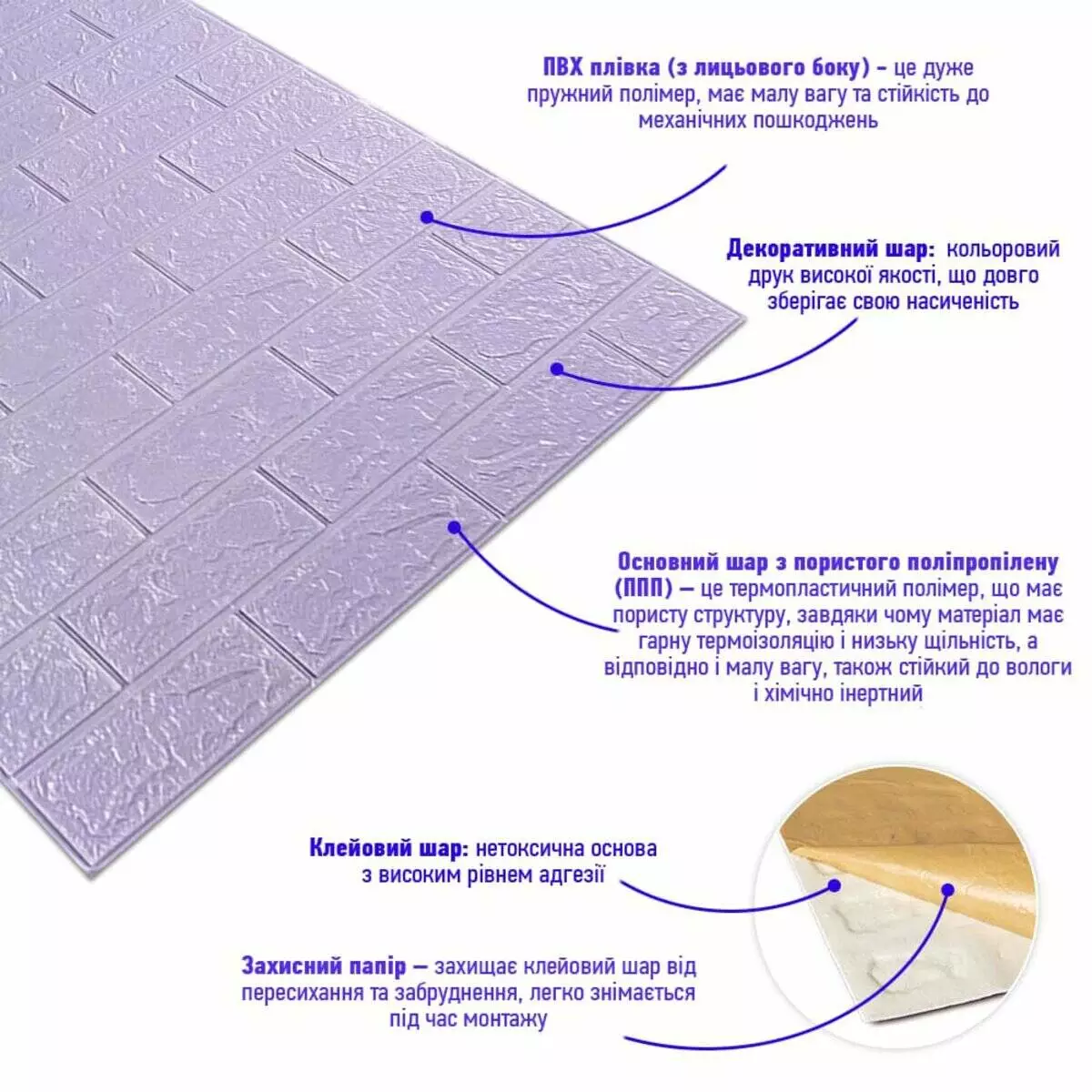 Самоклеюча 3D панель 19600x700x3мм Світло-фіолетова Цегла SW-00001470