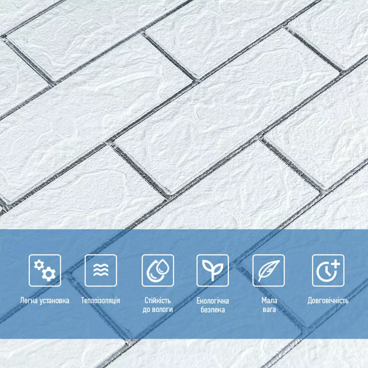 3D панелі самоклеючі – декоративне покриття для стін, виконане з легкого та міцного матеріалу – пористого поліпропілену (ППП). Основна особливість – рельєфний малюнок у вигляді цегли у широкому різноманітті кольорів та наявність клейового шару, що дозволяє встановити панелі без необхідності застосування додаткових матеріалів.